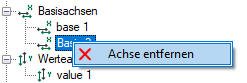 Ein Klick mit der rechten Maustaste auf einen Zweig öffnet ein entsprechendes Kontextmenü, mit dem sich Basisachsen, Werteachsen oder neue Elemente hinzufügen lassen.