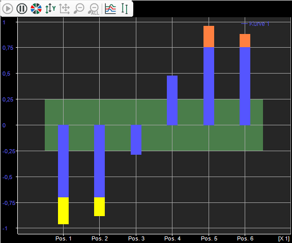 Ein begrenzter Bereich (Option Begrenzt) bezieht sich jeweils auf eine Achse und kann entweder statisch mit einem festen Wert definiert werden oder dynamisch mit einem Signal, das in der Auswahlliste ausgewählt werden kann. Werte außerhalb des Achsenbereichs werden abgeschnitten.