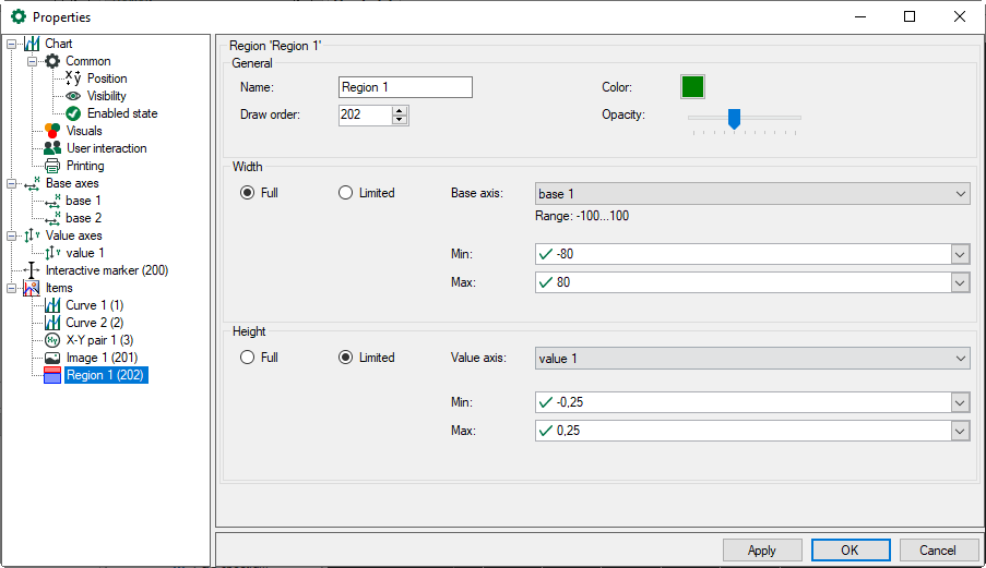 The position of the region is defined via Width and Height. With this, the width and height of the region can cover the total diagram (option Full) or only a certain range.