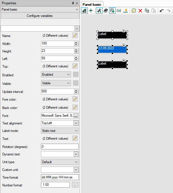 For example, a background color can be assigned to all objects. The property “Back color” can be changed here for different objects collectively.