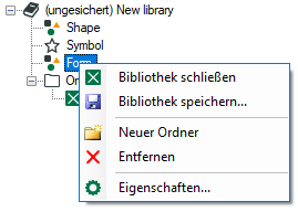 Für eine übersichtliche Struktur können in der Bibliothek Ordner und Unterordner angelegt werden. Der Befehl Neuer Ordner hierzu befindet sich im Kontextmenü. Mit dem Befehl Entfernen können Sie den Ordner wieder löschen.