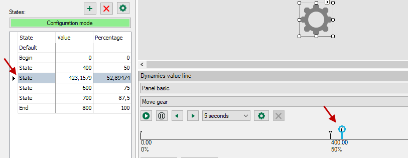 If you now change a property of the object in the panel, a new state will be added. The new state will also be displayed in the dynamics editor.