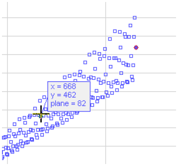 Diese Anzeige hat keinen eigenen interaktiven Marker. Wenn Sie bei gedrückter <M>-Taste mit der Maus über die Punkte fahren, werden die entsprechenden Werte (X, Y und Ebene) in einem Pop-up angezeigt.
