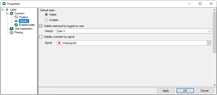An object can be visible or hidden. The visibility of an object can be controlled via a signal or by a user.