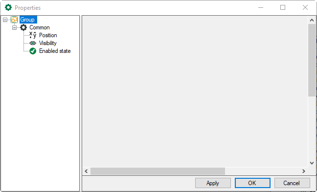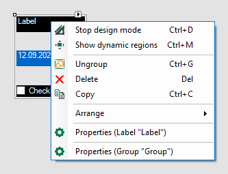 The properties dialog of a group offers only a few setting options, such as the general dynamic properties. If properties of a single object are to be changed, the group either needs to be ungrouped temporarily (provided that you are working in design mode), or you can right-click on an object in the group. In the context menu, you can then choose whether you want to edit the properties of the object or group.