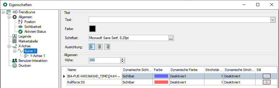 In der Spalte Stil kann die Kurvendarstellung mit oder ohne Füllung ausgewählt werden.