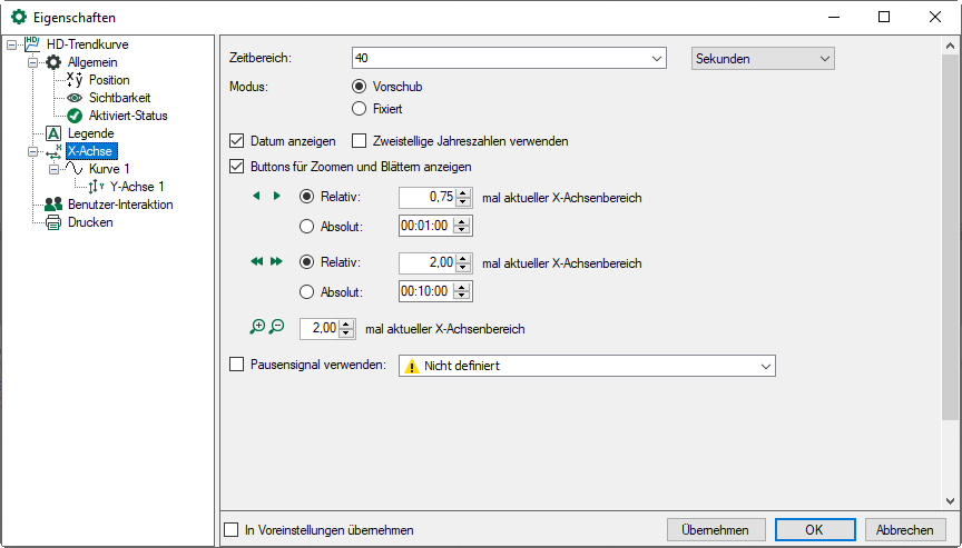 Im Knoten X-Achse definieren Sie die Eigenschaften der X-Achse.