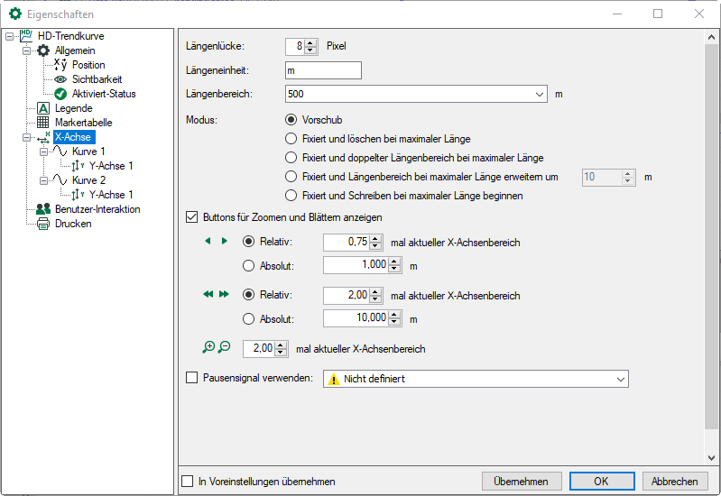 Wenn Sie diese Option aktivieren, werden entlang der X-Achse die Buttons für Zoomen und Schwenken angezeigt. Standardeinstellungen: