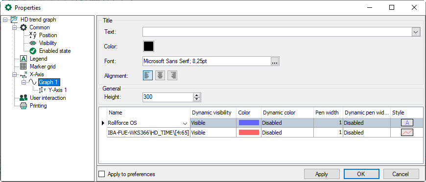 The thickness of the signal can be firmly adjusted or can be controlled dynamically by another signal. For example, the thickness of the signal can be displayed broader with a certain state. In the drop-down menu of the respective column, select the signal that controls the property.