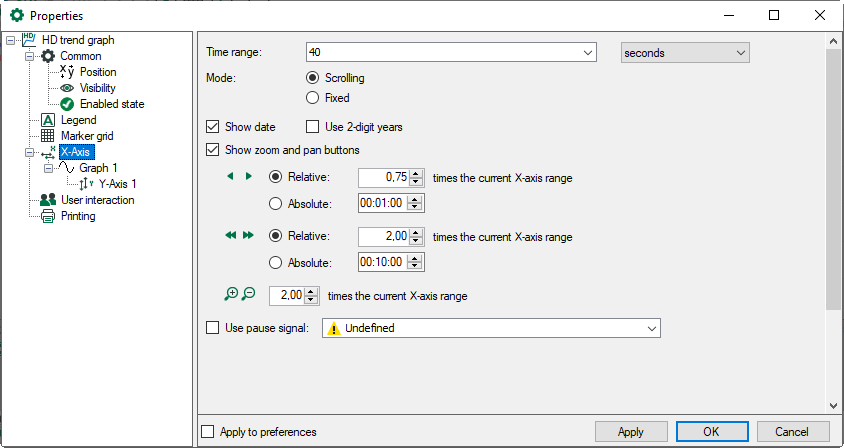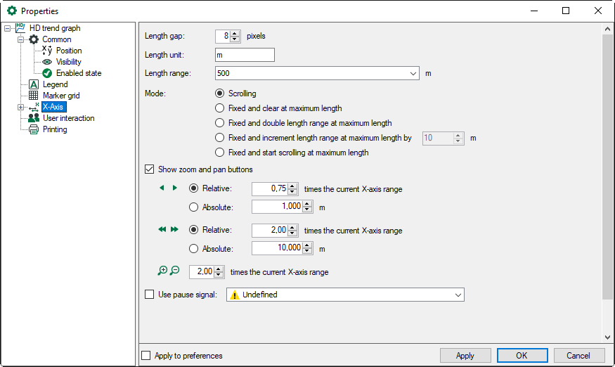If you enable this option, the zoom and pan buttons will be displayed along the X-axis. Default settings are: