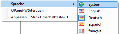 Ist eine dieser Sprachen für das System eingestellt, kann diese Sprache auch für ibaQPanel genutzt werden, indem bei der Sprachauswahl System ausgewählt wird.