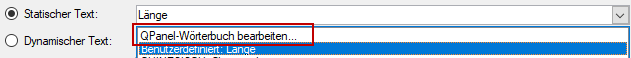 Öffnen Sie die Auswahlliste des Textfeldes, welches sprachabhängig sein soll und wählen "QPanel-Wörterbuch bearbeiten...".