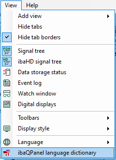In ibaPDA, the GUI language can be switched using the View - Language menu command. As default, German, English and French are available. The availability of further languages depends on the language pack installed. In ibaQPanel, you can switch the language of text-based objects using the language switch of ibaPDA, too. The prerequisite is that the text belonging to the objects, is available in a language dictionary for the different languages.