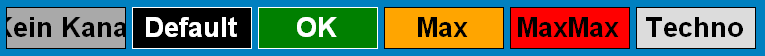 Das folgende Beispiel zeigt (von links nach rechts) den Kein-Kanal-Status, gefolgt vom Default-Status und vier konfigurierte Zustände einer Mehrfachstatus-Textanzeige.