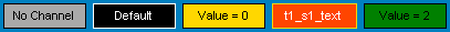 The following example shows (from left to right) the no-channel state, the default state and three configured states of multi-state text displays.