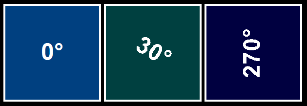 You can also select the text alignment in the text field and whether the text should be rotated. For the rotation, you can enter a value from 0° to 360° manually or select predefined values from the selection list. Examples of text rotation: