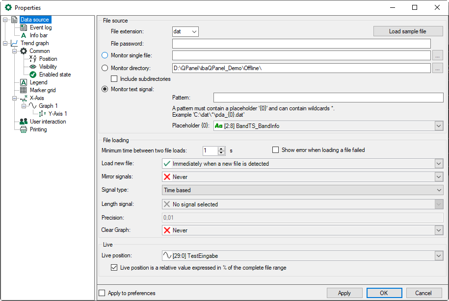 To load a file, open the properties dialog of the offline trend graph over the context menu.
