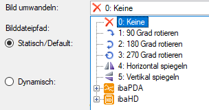 Der Bilddateipfad kann statisch oder dynamisch angegeben werden. Wählen Sie in der Auswahlliste einer der folgenden Optionen. Je nach Auswahl ändern sich die nachfolgenden Eingabefelder.