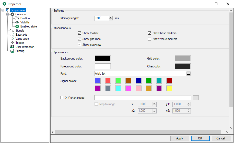 The appearance of the scope view is configured in the Properties dialog.