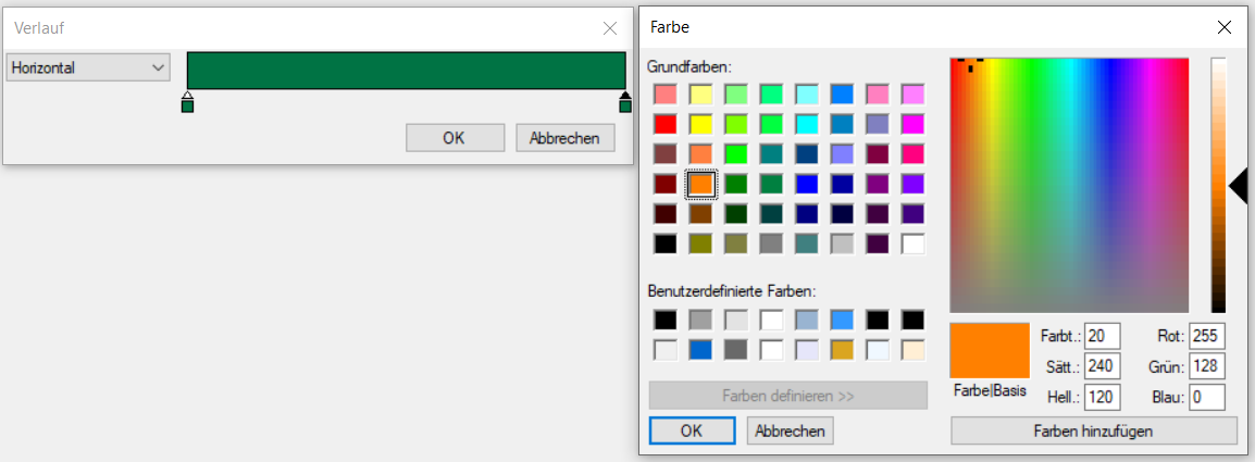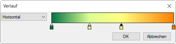 Mithilfe des Schiebereglers kann der Farbverlauf definiert werden. Ein Doppelklick auf einen Ankerpunkt öffnet den Farbeditor zur Auswahl der Farbe.