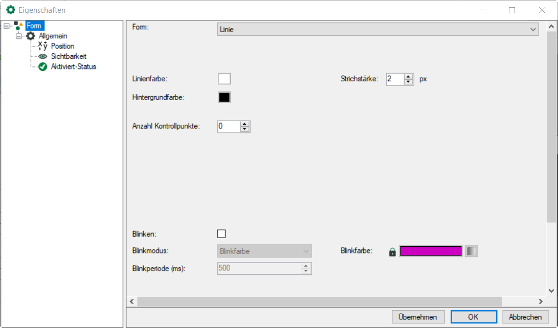 Je nach ausgewählter Form werden nur die jeweils relevanten Einstelloptionen angezeigt.