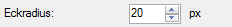 Für ein Rechteck können abgerundete Ecken definiert werden. Geben Sie hierfür bei Eckradius den Radius in Pixel ein. In den ausgesparten Ecken wird die Hintergrundfarbe sichtbar.