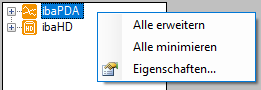 Mit einem rechten Mausklick in einen freien Bereich des Signalbaums können die Befehle zum Auf- und Zuklappen des Baumes ausgewählt werden: Alle erweitern/Alle minimieren