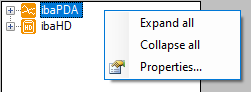With a right mouse click in a free area of the signal tree, the commands for expanding and collapsing the tree can be selected. Expand all/Collapse all
