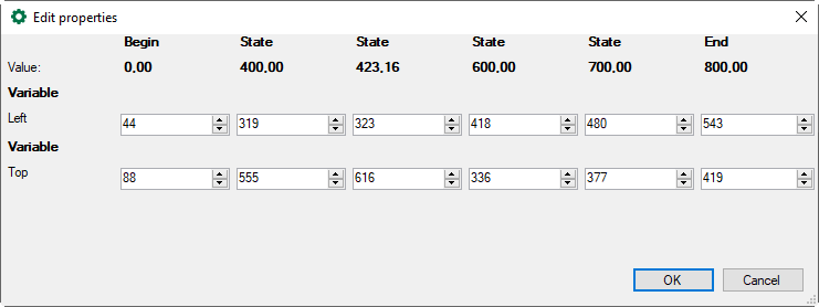 Here, you can set the time, in which the simulated procedure will be carried out. Example 30 seconds: playing the simulation from the begin state to the end state takes 30 s. |