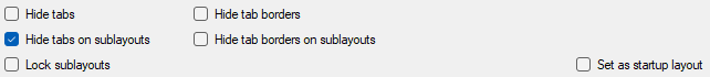 You can use the checkboxes to specify whether the tabs or tabs in subordinate layouts are hidden or displayed, whether the tab border is hidden or displayed in the layout or in subordinate layouts, and to specify a start layout.