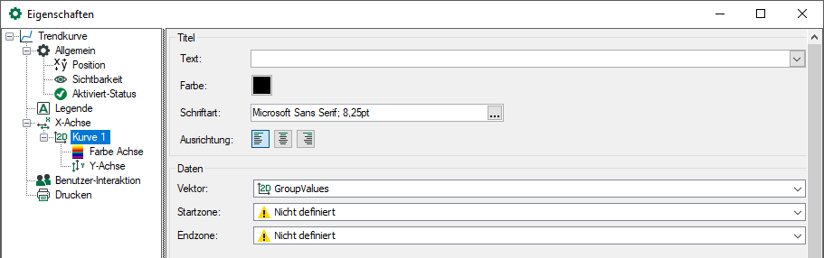 Wenn Vektorsignale auf die Trendkurve gelegt wurden, können zusätzlich die Optionen Start- und Endzone eingestellt werden. Ein Vektorsignal besteht aus einer Gruppe von mehreren Einzelsignalen, die eine so genannte Zone beschreiben. Wenn nur ein Teil der Zone angezeigt werden soll, kann eine Startzone und eine Endzone definiert werden.