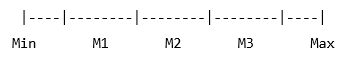 Zwischen den Werten Min und Max werden 5 Zonen erzeugt. Die erste und die letzte Zone haben die halbe Breite der anderen Zonen. Die Zonenbreite wird berechnet als (Max - Min) / (Anzahl der Zonen - 1). Die Zonen werden wie folgt positioniert:
