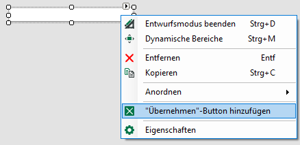 Wenn Sie eine Werteingabe auf das Panel ziehen, ist diese standardmäßig ohne Schaltfläche. Sie können die Schaltfläche hinzufügen, indem Sie das Kontextmenü öffnen und Übernehmen"-Button hinzufügen auswählen.
