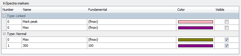 The settings of the InSpectra markers can only be changed in the InSpectra profile. Only the visibility can be set here.