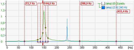 The values of the harmonic markers are displayed at the maximum height of the value axis. The unit of these values corresponds to the unit of the base axis (see the chapter Base axes). The view can be configured to show only the frequency of the main marker.