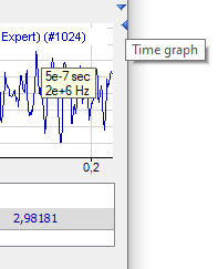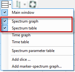 In addition to the main window, you can open a graphical and/or tabular display of the data of the frequency spectrum. Click on the button for the window menu in the toolbar of the FFT view for this purpose.