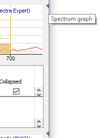 Graphical display and data table form one group, as the table always provides the data matching the spectrum in the graph. However, the graph and table can be individually displayed or hidden.