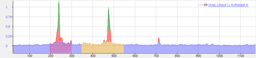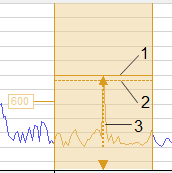1 Linie bei Spitzenwert 2 Linie bei RMS-Wert 3 Linie bei Frequenz-Spitzenwert, hervorgehoben bei Mouseover |