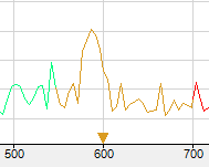 Die Kennwerte der Bänder können als Linien angezeigt werden, die bei Mouseover hervorgehoben werden können. Beispiel: