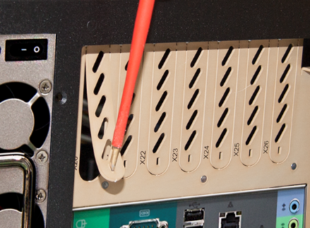 On the backside of the device, use a screwdriver to remove the cover plate of the designated slot.