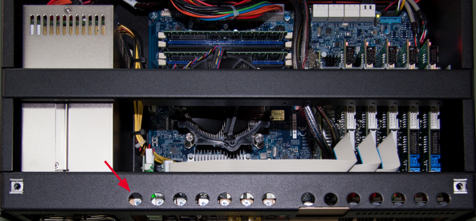 Above the slot, there is a screw in an opening, which is used to fix the card later. Loosen the screw and remove it.