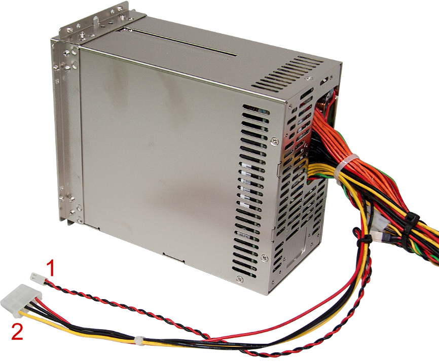 Connection of redundant power supply unit: If a redundant power supply unit is to be monitored, connect the twisted cable (black/red) of the power supply unit (1 – picture above) to the 2-pin connector (1 – picture below) of the card. This connection is not necessary, when a standard power supply unit is used.