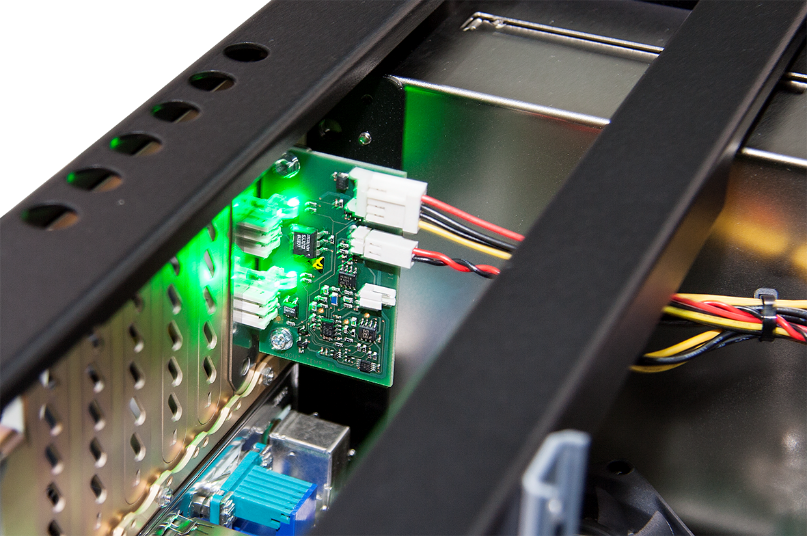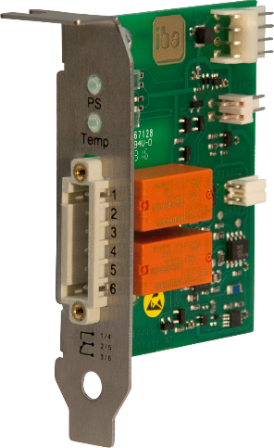 The temperature and the status of the power supply unit in ibaRackline PCs can be monitored with the slot card ibaOut-State.