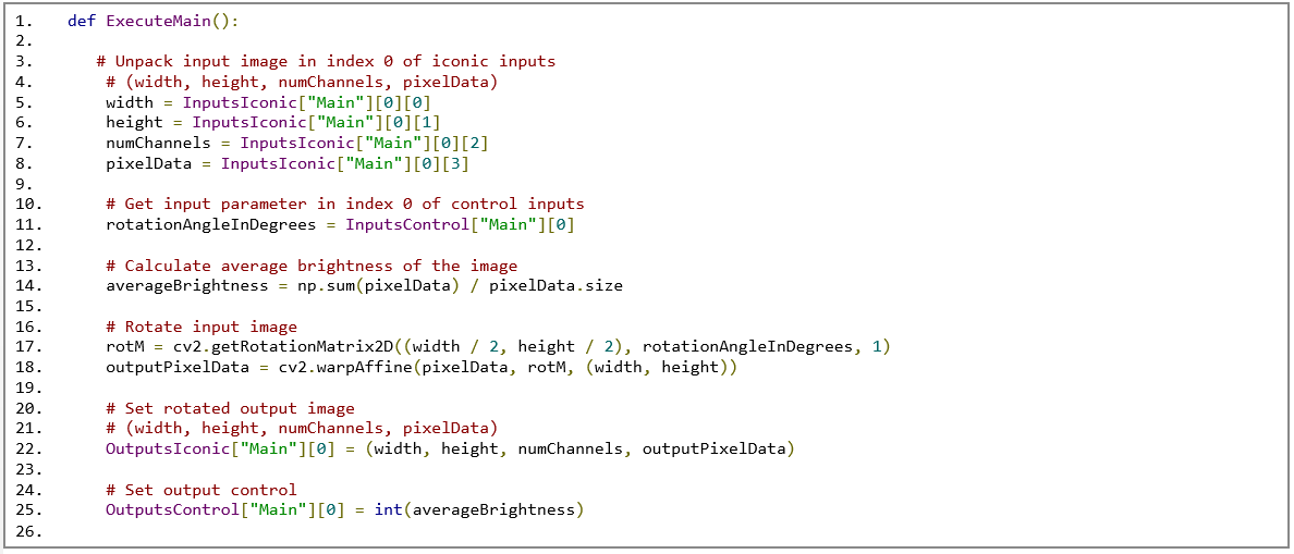 Lines 22-25 set the outputs for ibaVision to retrieve.
