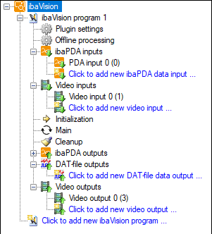 To add a new program, click on the link Click to add a new ibaVision program…. . A new ibaVision program node will be created with the following subnodes: