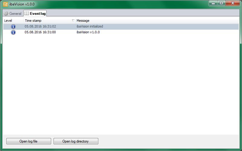 Clicking the button <Open log file> will open the current log file in the default text editor, the button <Open log directory> will open the directory containing the current and previous log files in Windows Explorer.