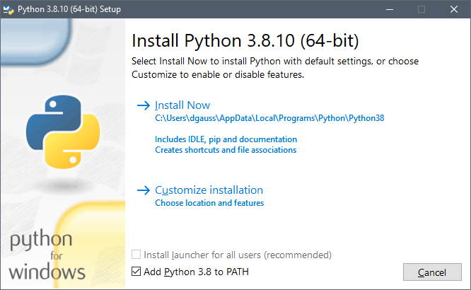 In the Python v3.8 installer, it is at the moment necessary to check the “Add Python 3.8 to PATH” checkbox, otherwise ibaVision won’t be able to use the installation.