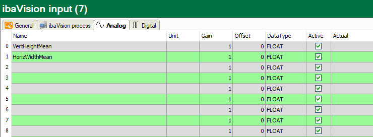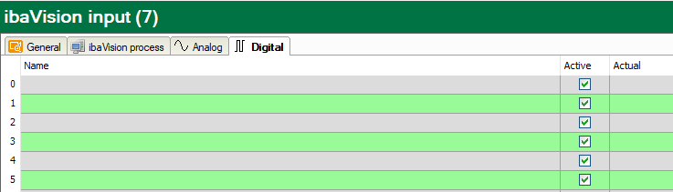 The signal mapping can be checked in the Analog and Digital tabs. The signals configured in the ibaPDA output module in ibaVision are listed here. No further action is necessary.