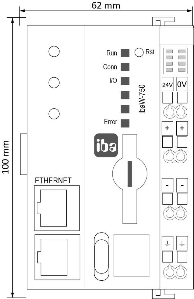 Dimensions ibaW-750 front (dimensions in mm)