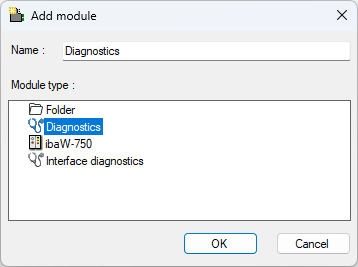 To add a diagnostic module, select the module type "Diagnostic" in the dialog Add module.